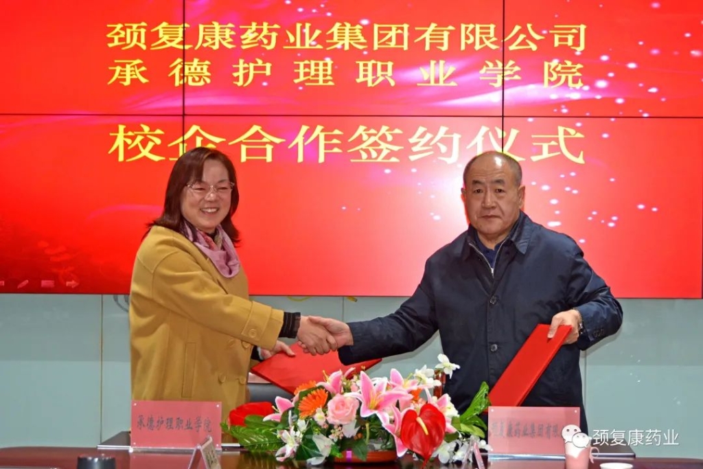 我公司與承德護(hù)理職業(yè)學(xué)院舉行校企合作“頸復(fù)康藥業(yè)英才獎(jiǎng)學(xué)金”簽約儀式